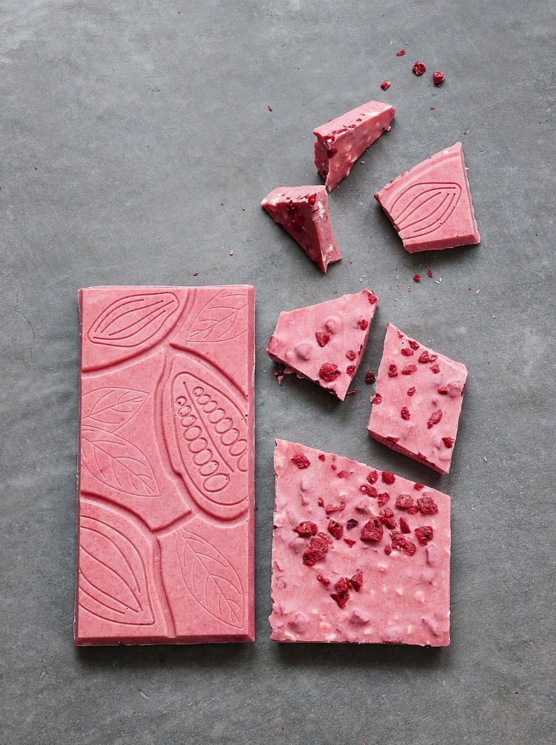 - Dunkle Himbeere - Intensive dunkle Schokolade mit gefriergetrockneten Himbeere.
